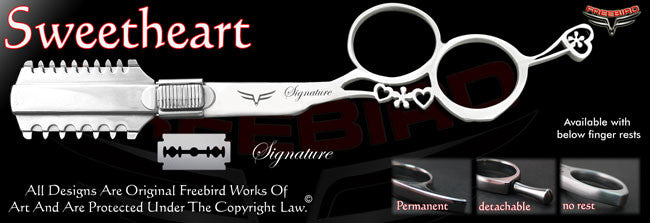 Freebird Shears is the only shear company in the world that lets you build your own professional custom razors from scratch in just a few easy steps. Our Custom razors are hand made one by one according to our customers specifications right here in the U.S.A. out of high quality stainless steel. No plastic parts whatsoever. All of our razors come with a lifetime and a money back guarantee. We stand behind our products 100%. Making flawless precision instruments that reflect who our customers are as professionals, as artists and as human beings is what we are all about.