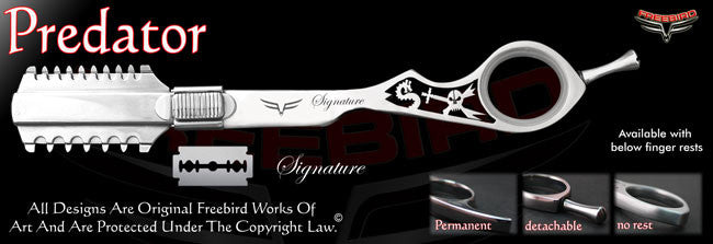 Freebird Shears is the only shear company in the world that lets you build your own professional custom razors from scratch in just a few easy steps. Our Custom razors are hand made one by one according to our customers specifications right here in the U.S.A. out of high quality stainless steel. No plastic parts whatsoever. All of our razors come with a lifetime and a money back guarantee. We stand behind our products 100%. Making flawless precision instruments that reflect who our customers are as professionals, as artists and as human beings is what we are all about.