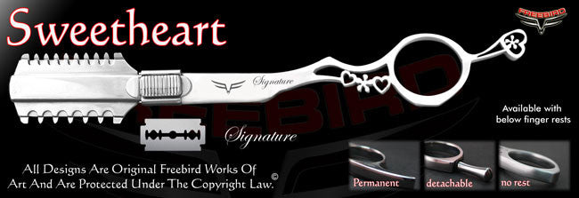 Freebird Shears is the only shear company in the world that lets you build your own professional custom razors from scratch in just a few easy steps. Our Custom razors are hand made one by one according to our customers specifications right here in the U.S.A. out of high quality stainless steel. No plastic parts whatsoever. All of our razors come with a lifetime and a money back guarantee. We stand behind our products 100%. Making flawless precision instruments that reflect who our customers are as professionals, as artists and as human beings is what we are all about.