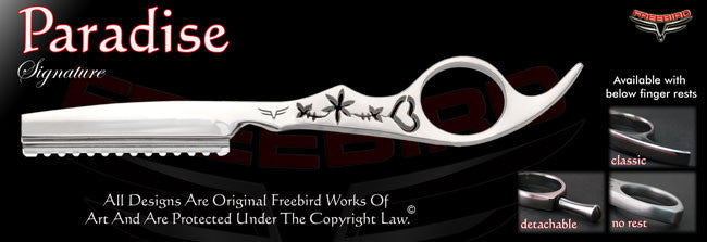 Freebird Shears is the only shear company in the world that lets you build your own professional custom razors from scratch in just a few easy steps. Our Custom razors are hand made one by one according to our customers specifications right here in the U.S.A. out of high quality stainless steel. No plastic parts whatsoever. All of our razors come with a lifetime and a money back guarantee. We stand behind our products 100%. Making flawless precision instruments that reflect who our customers are as professionals, as artists and as human beings is what we are all about.